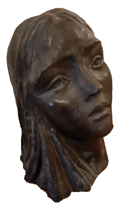 This sculpture in Bronze depicts the face of a young women. The face expressions are interesting and can in fact transmit various messages. One can see serenity, yet at the same time one can see concern. The subject of this sculpture was intended to allow the viewer to sit and consider what this wonderful woman was actually thinking and what was she going through at that time. In the end, it is the viewer that will decide what is seen and what the sculptor was creating at the time.