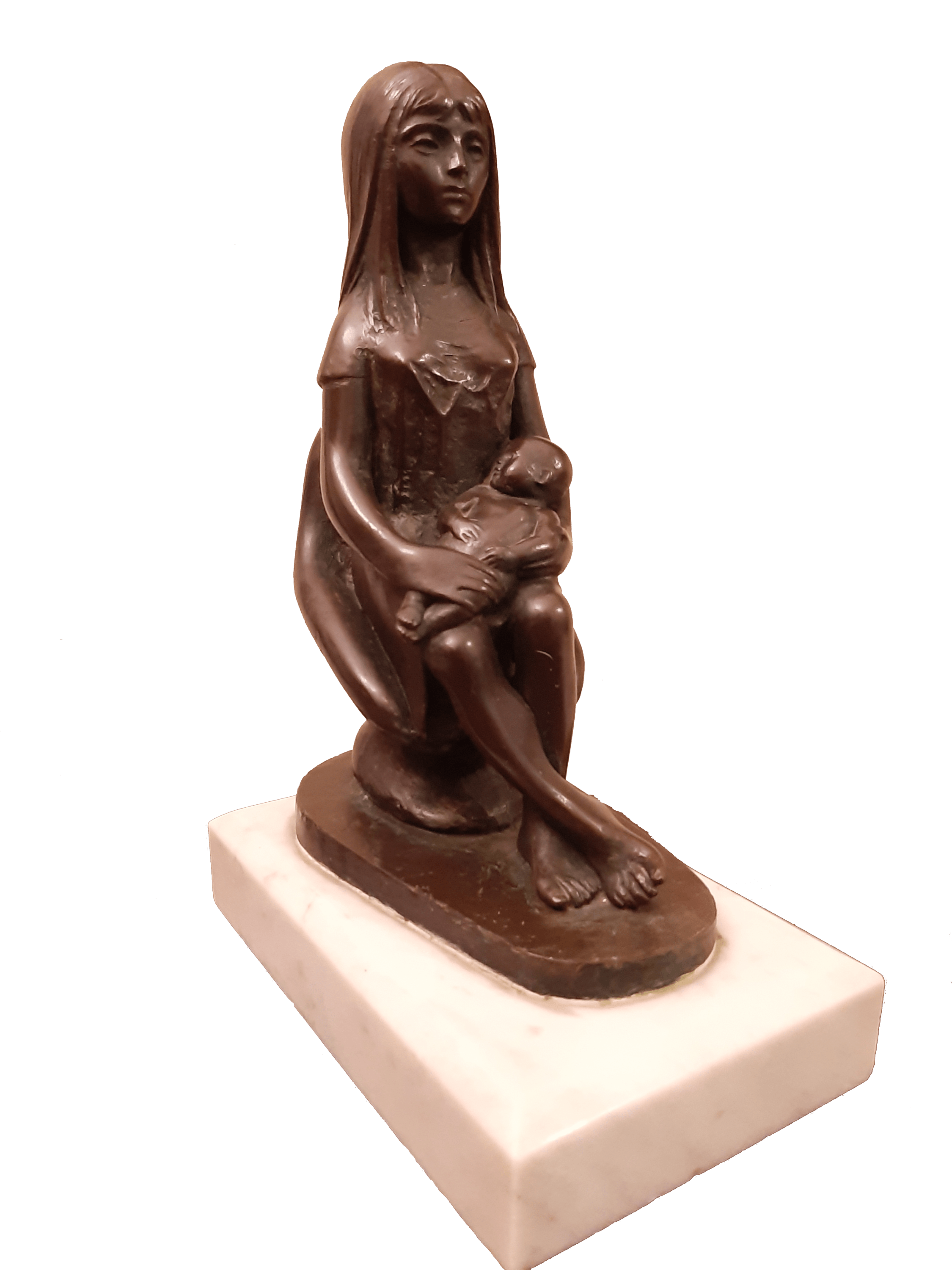 Motherhood retained an emotional soft spot for Samuel Bugeja. Throughout the years he created various statues with different interpretations. This particular work of art depicts a pensive mother wondering what the future of her baby will hold
