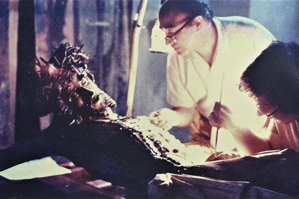 Samuel Bugeja And Son Gerald During Restoration That Brought Back The Miraculous Crusifix To Its Original Artistic Beauty & Religious Awe